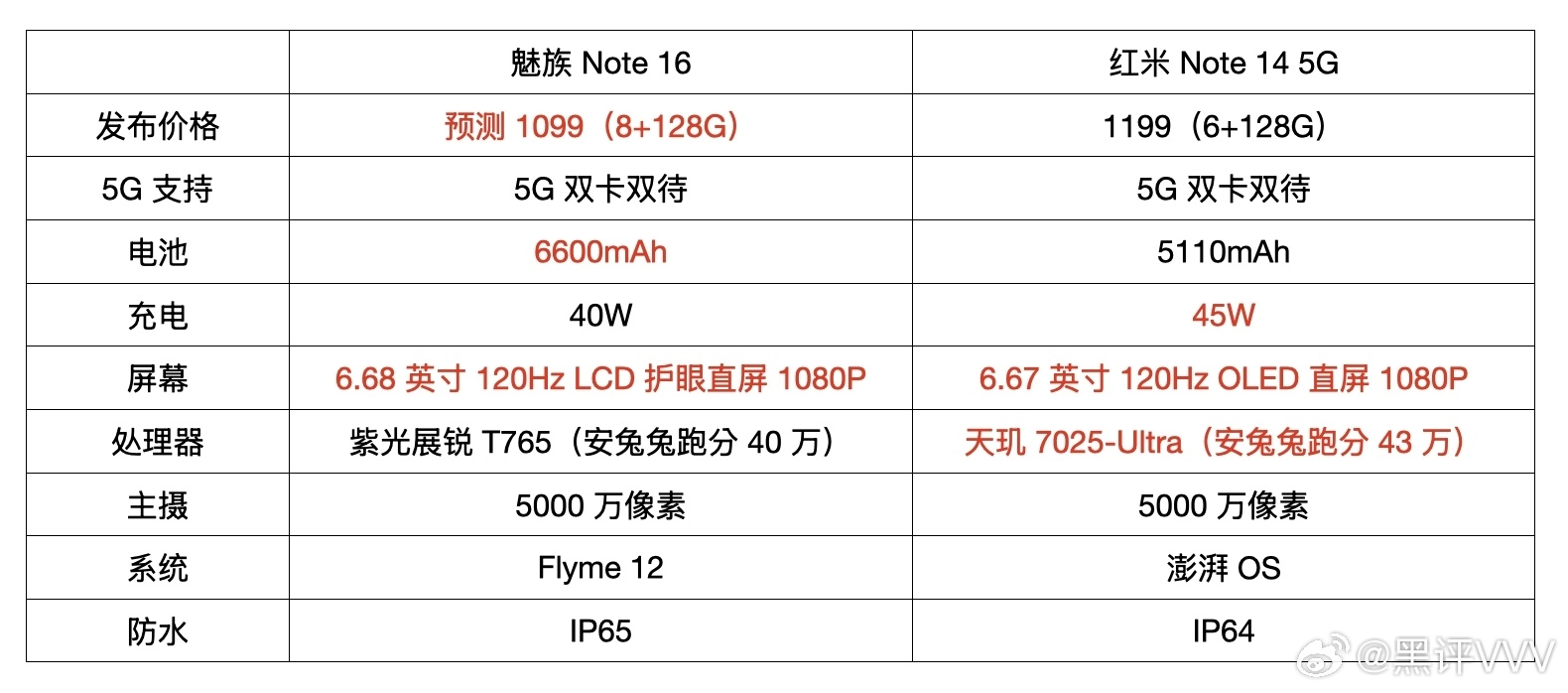 其他参数方面,据博主爆料,魅族Note 16还将配备LCD直屏,电池容量为6600mAh,充电功率达40w。